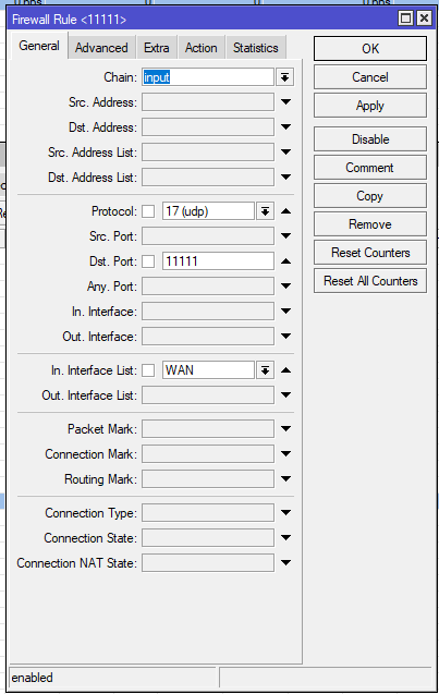 - Regla INPUT que permita el acceso al puerto UDP correspondiente: 11YY