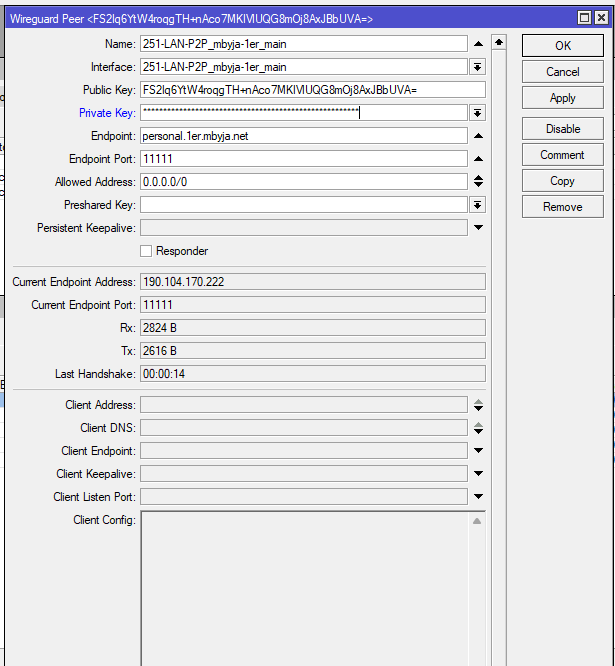 - En el lado del cliente, tambien agregar la interfaz y el peer correspondiente.