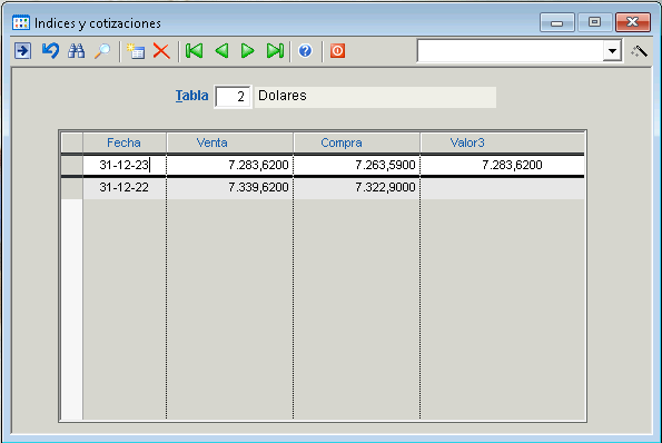 Tablas > Contables e impositivos > Índices y cotizaciones > Carga por tablas