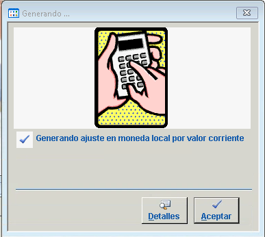 Únicamente para este proceso, se debe establecer manualmente, según el tipo de cuenta que se esta ajustando, la cotización en el primer campo, en el ejemplo: Venta.