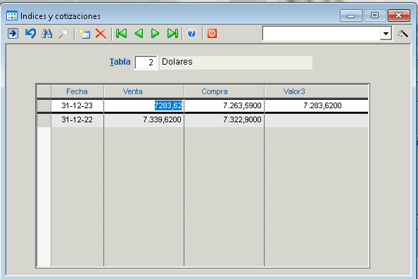 Tablas > Contables e Impositivos > Índices y cotizaciones > Carga por tablas