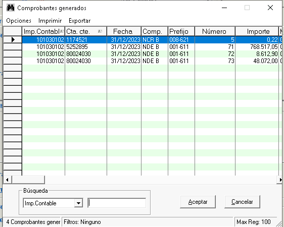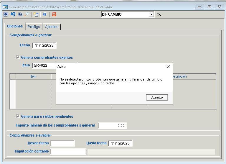 5. Ante una situación en la que no corresponda generar comprobantes, el sistema arrojara un mensaje: