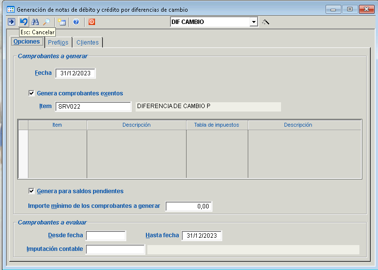 Procesos > Cuentas a cobrar > Notas por diferencia de cambio