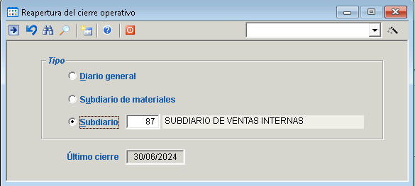 2. Seleccionar subdiario y clic en reabrir (F10)