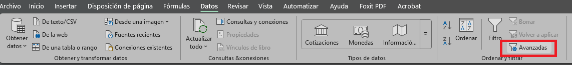 Seguidamente con al herramienta de filtro avanzado, podemos filtrar una sola línea por código.