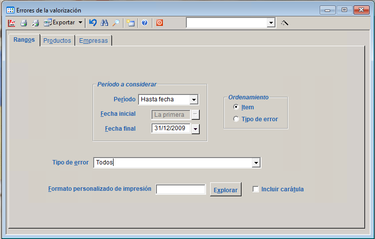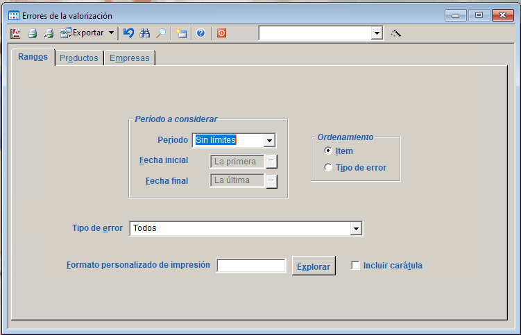 4. El informe puede emitirse con ordenamiento por tipo de error.