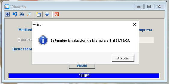 5. Una vez finalizado el proceso de valuación, el sistema arrojara un mensaje indicando el resultado. Click en Aceptar.