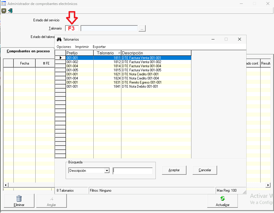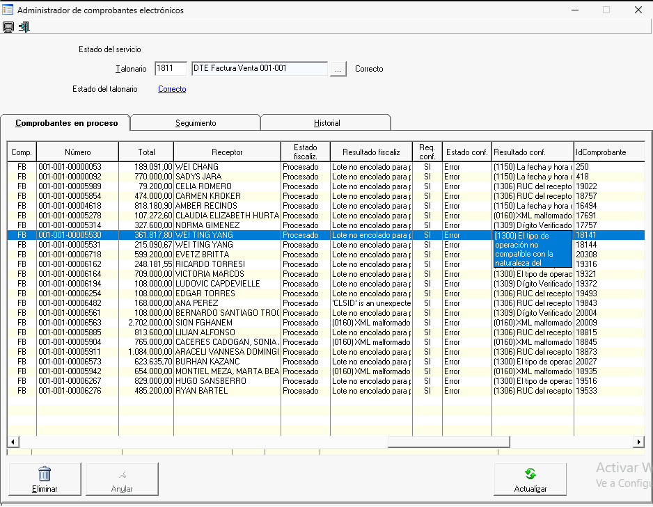 Mediante esta ventana se puede visualizar el estado de fiscalización de los comprobantes registrados.