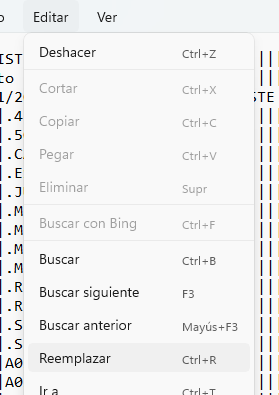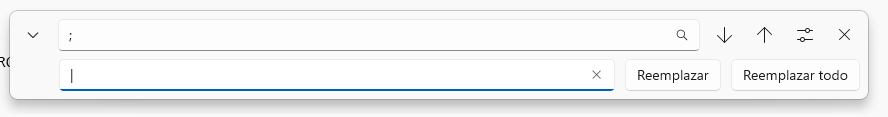 7. Reemplazar el caracter punto y coma ";" (o coma "," según versión de Windows), por el caracter pipe "|".