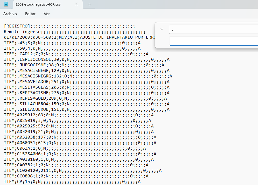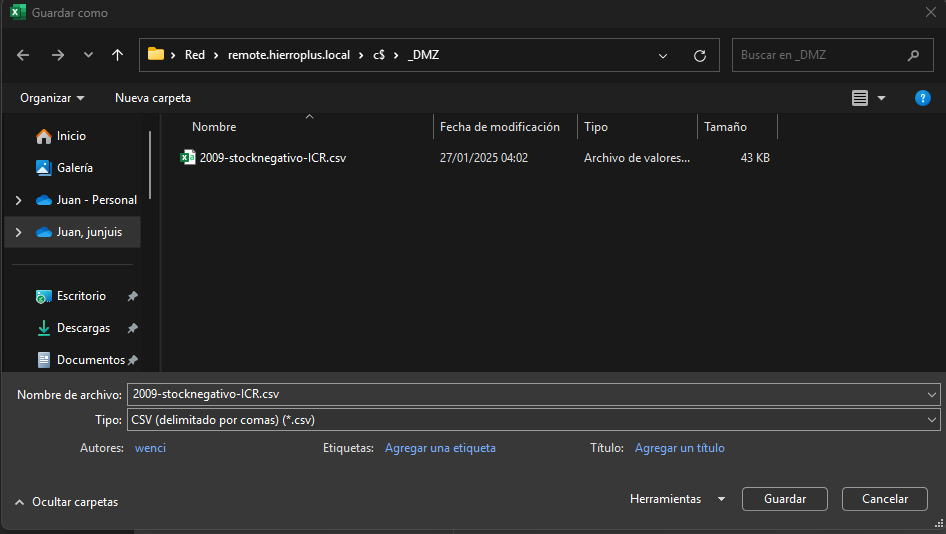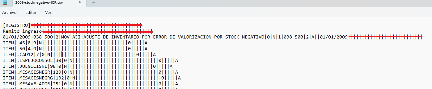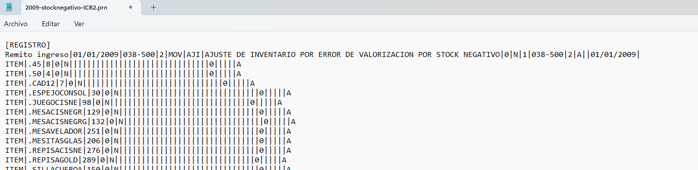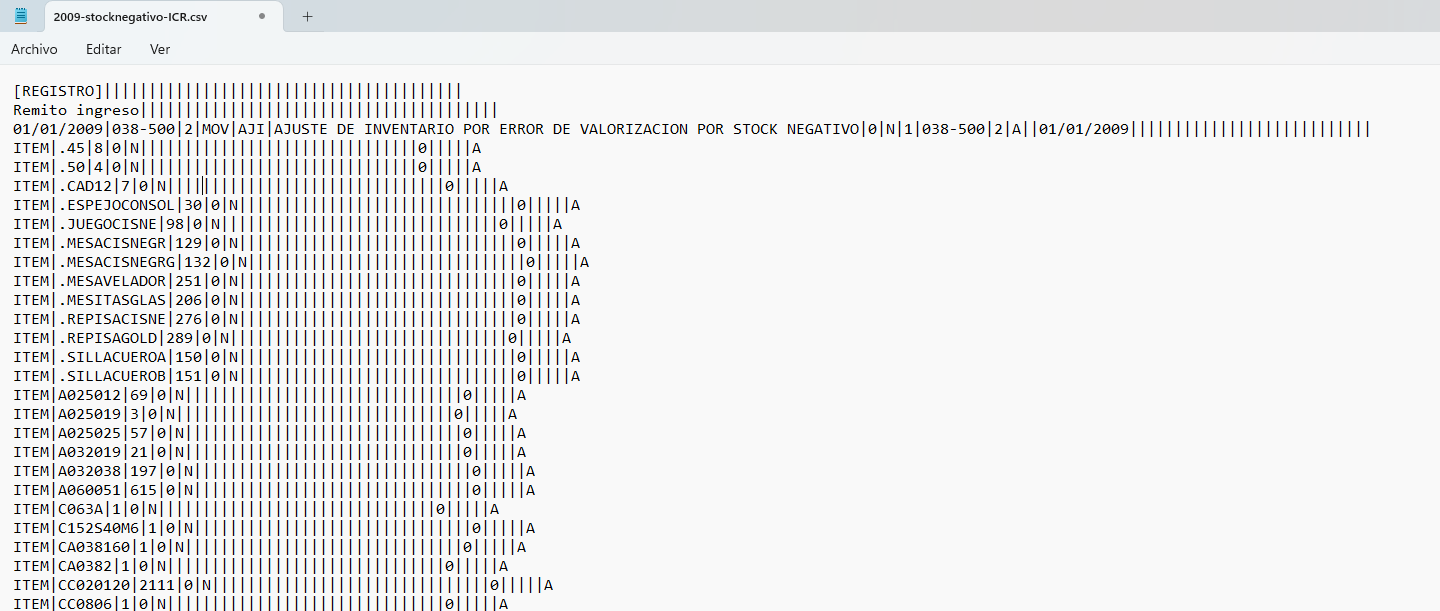 - Archivo ejemplo: 2009-stocknegativo-ICR-ingreso.xlsx