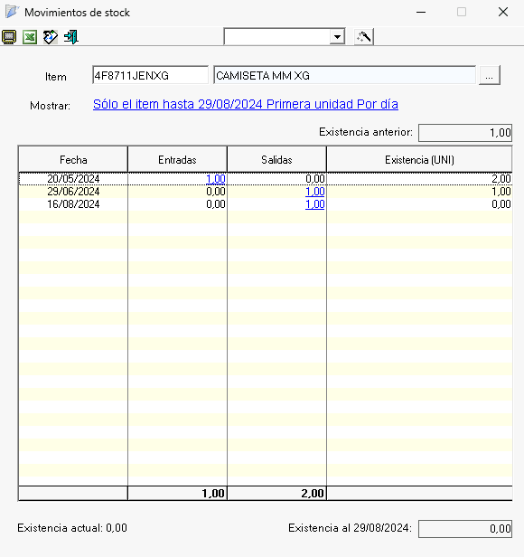 Se agotó la existencia del ítem [CODIGO + DESCRIPCION]