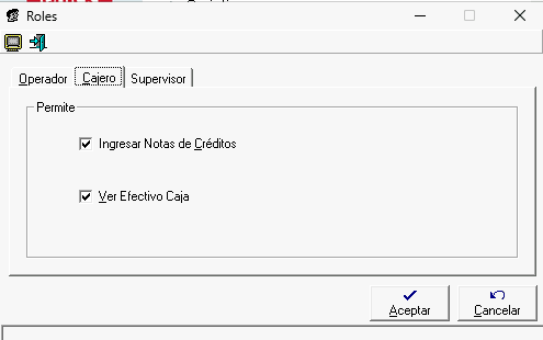 Los operadores pueden tener los siguientes roles, primeramente todos son operadores, luego estos pueden ser vendedores o supervisor/vendedor, pueden ser cajeros o supervisor/cajero, en fin un operador puede tener todos los roles o solo uno de los citados mas arriba.