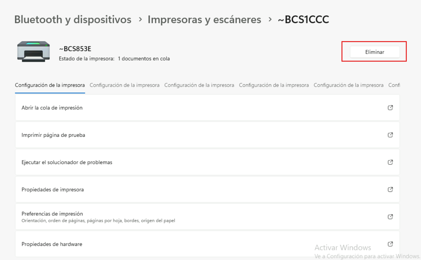 paso cuatro: eliminamos las impresoras con ese nombre.