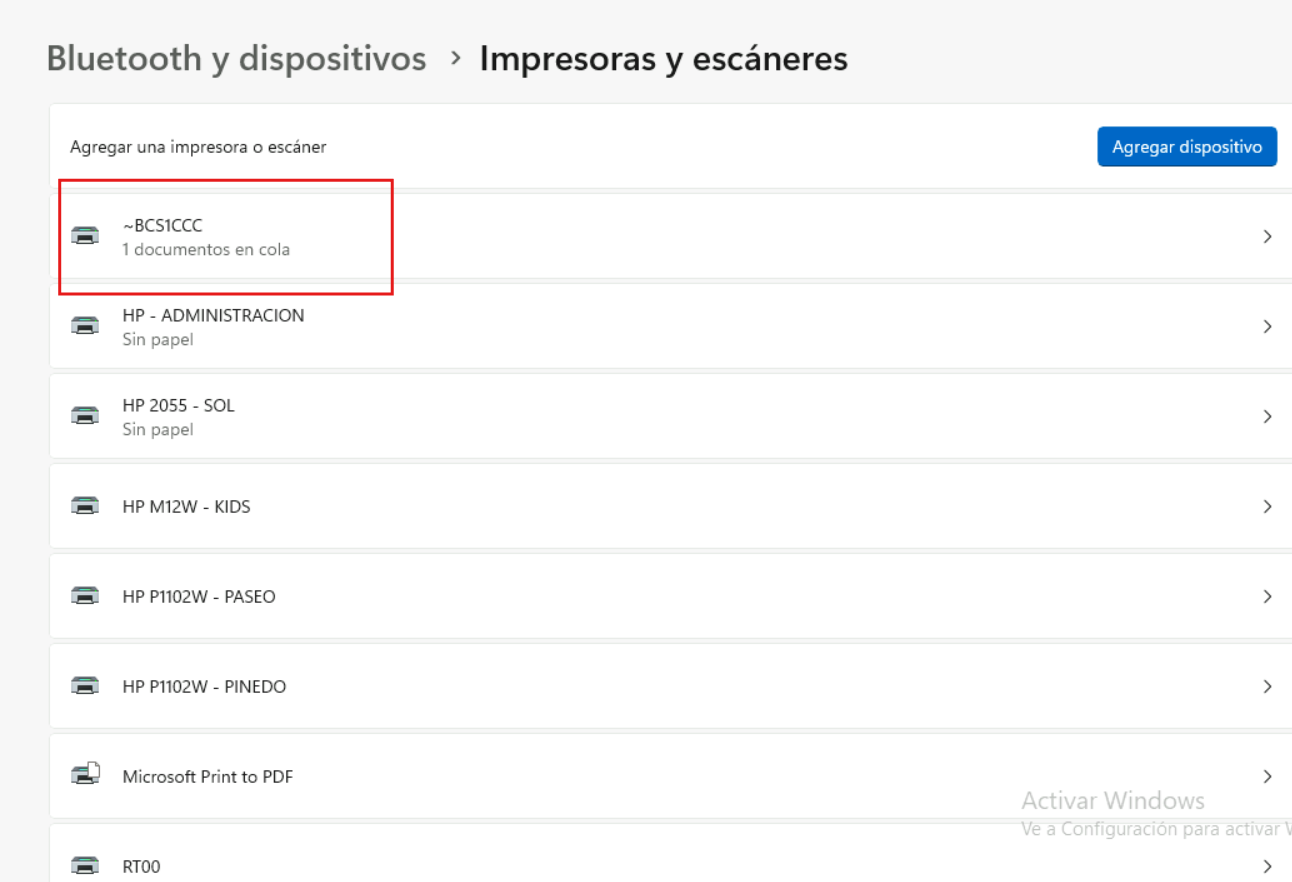paso tres: seleccionamos todas las impresoras que inicien con "BCS".