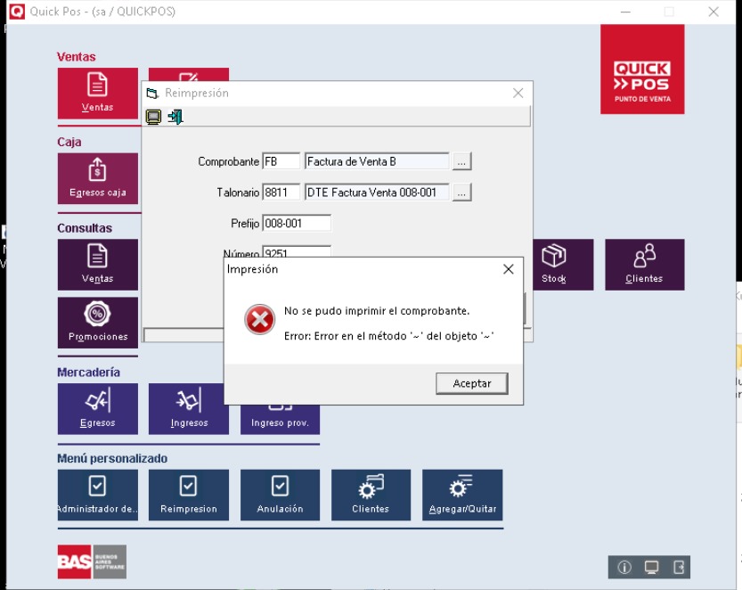 No se pudo imprimir el comprobante