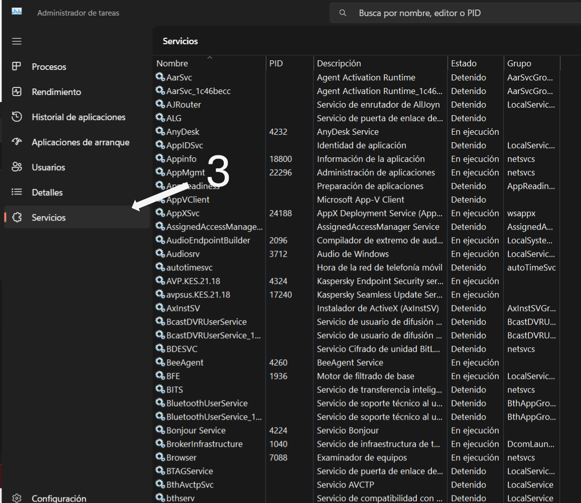 3. ingresamos a servicios