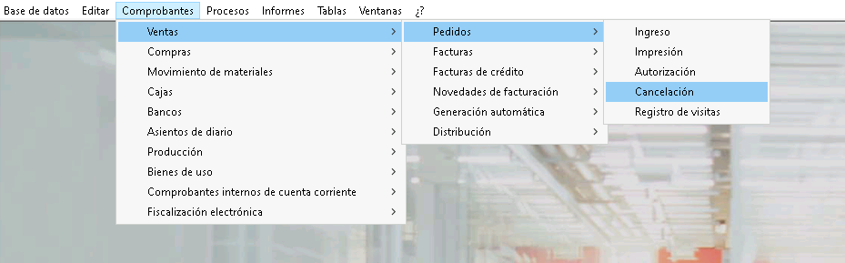 COMPROBANTES<<>>VENTAS<<>>PEDIDOS<<>>CANCELACION